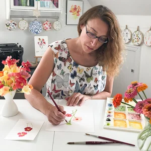 As a professional artist, my sketchbooks are used for making color swatches, doodling, drawing portraits, painting watercolors, testing block prints, plein air landscapes, floral and botanical studies and note taking at workshops. I also like to have a small sketchbook in my bag to keep myself entertained while waiting, looking for something to draw nearby that catches my eye. Some sketches take take just a few minutes to draw, while others are hours and sometimes days of work.